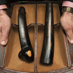 An anonymous bidder (surprise, surprise) paid a whopping £3,600 (over $5 grand) for a pair of wooden phallus-shaped carvings that apparently date back to the 1700s. One is 10 inches long and the other is 11, not including the testicles.