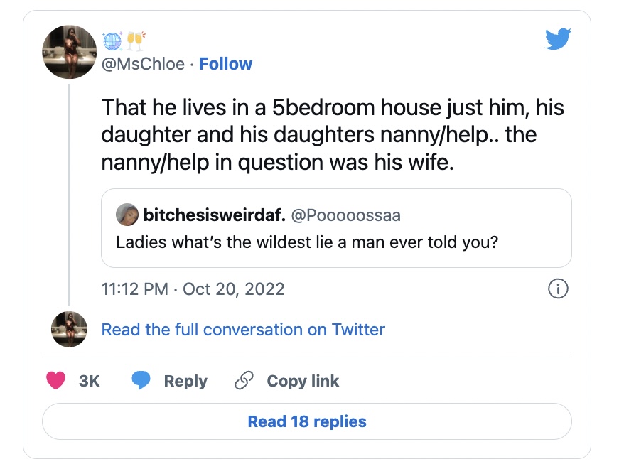 Recently on Twitter a user asked women to share the worst lie a guy ever told them, and these cheaters had some seeeerious balls: