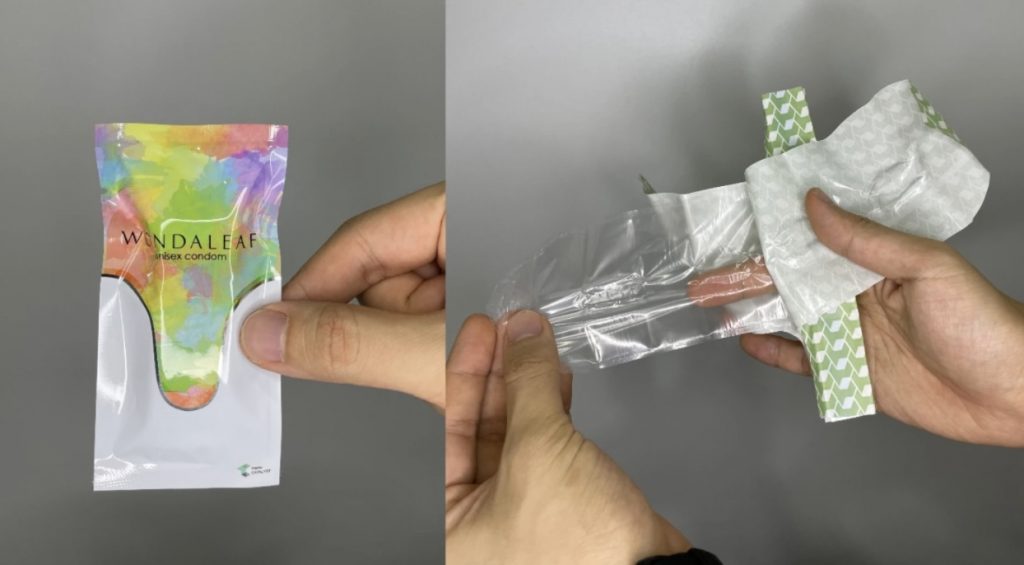 The Wondaleaf Unisex Condom comes with adhesive portions made to keep it attached to users. It also covers a larger part of the body, including the vulva and the base of the penis.