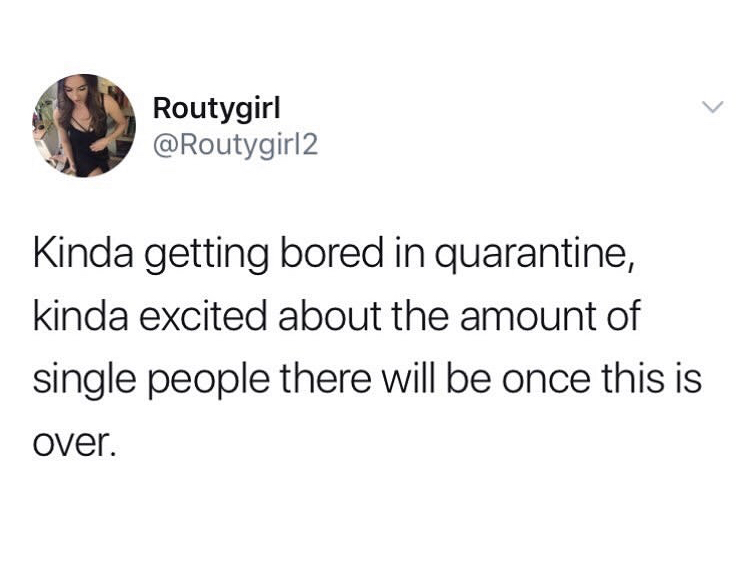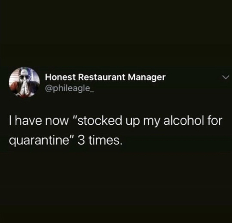 We could come up with some quirky intro about Coronavirus, and staying inside, and flattening the curve, and #QuarantineAndChill etc etc etc, but look, we’re all bored AF, so just take these memes and wash them down with straight tequila bc we ain’t got time for beer and wine no more.