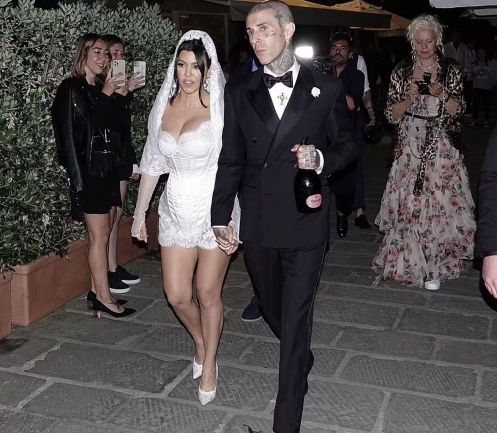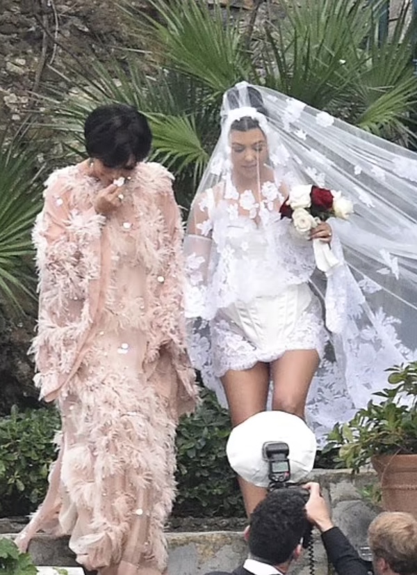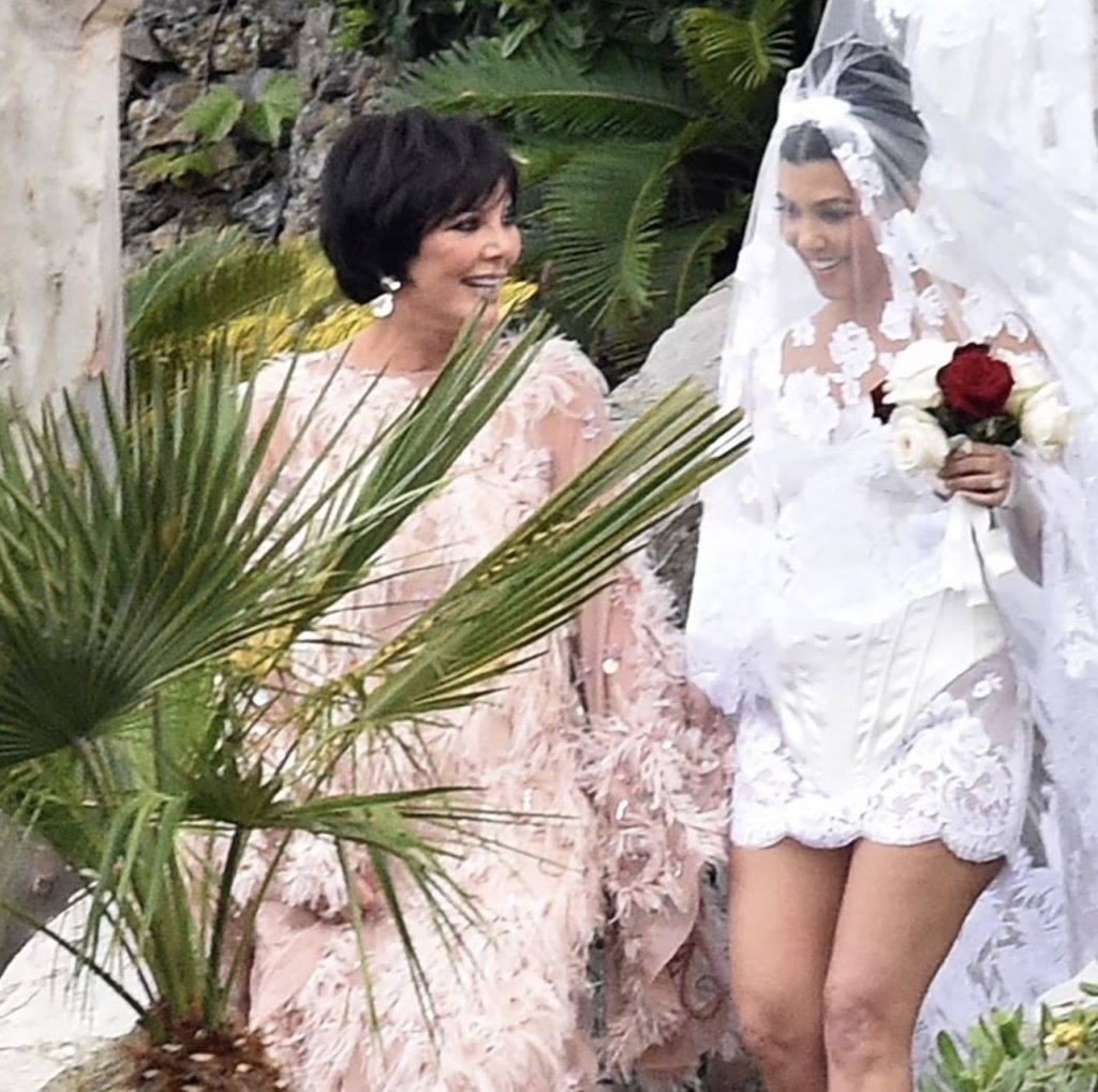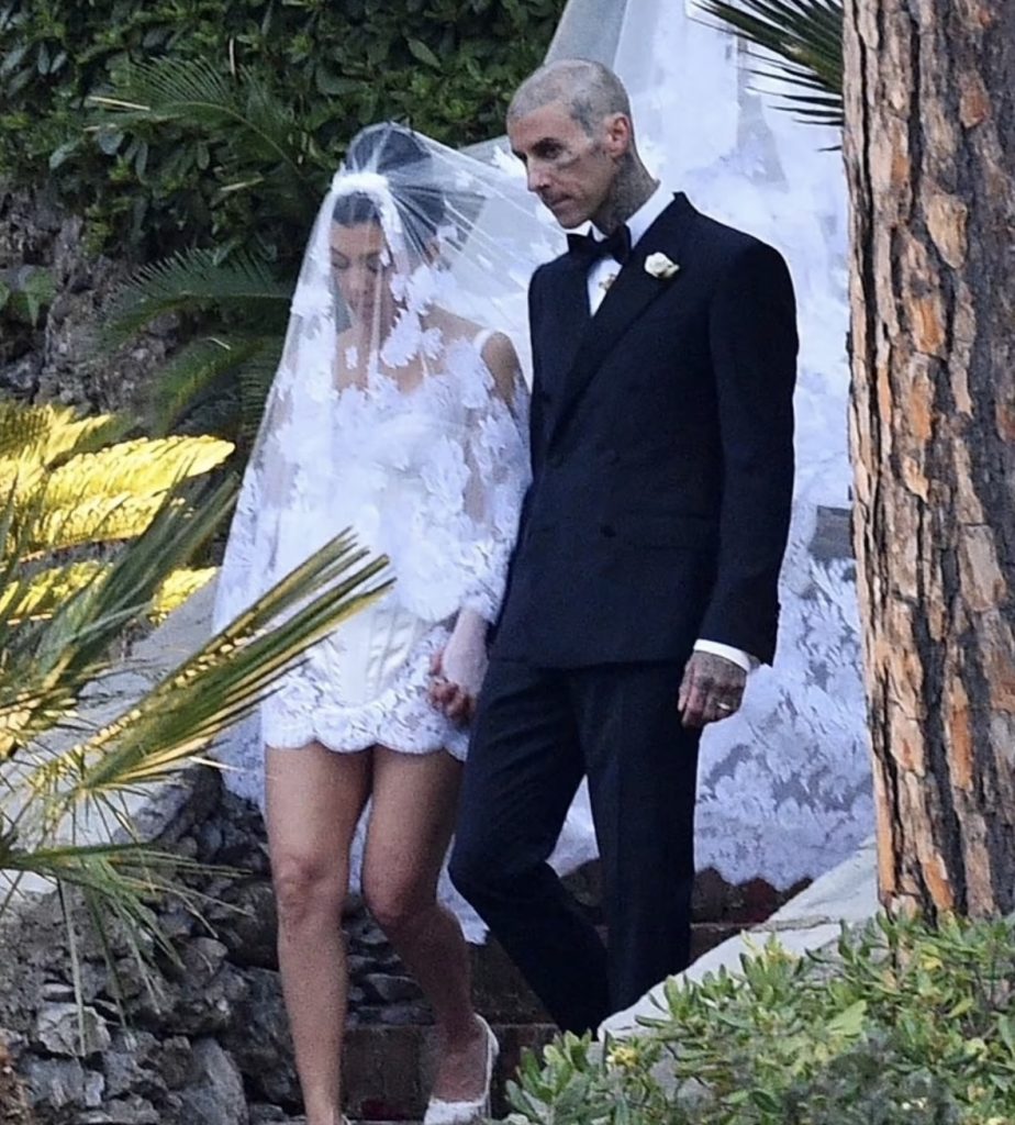The most celeb thing sentence might be, “my second wedding, the one in Portofino” – and that’s just what the eldest Kardashian sister did this past weekend, wedding Travis Barker in front of her famous family and friends, and wearing a dress that could double as wedding-night lingerie.