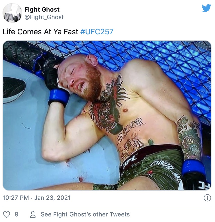 UFC star and notorious social media troll Conor McGregor was unexpectedly knocked out in UFC 257 by Dustin Poirier this past weekend, and Twitter didn’t waste a second turning him into a Bernie-level meme. The results were hilarious, but boy do we hope he’s either taking it as a joke or hiding away under a rock cause they are brutal!