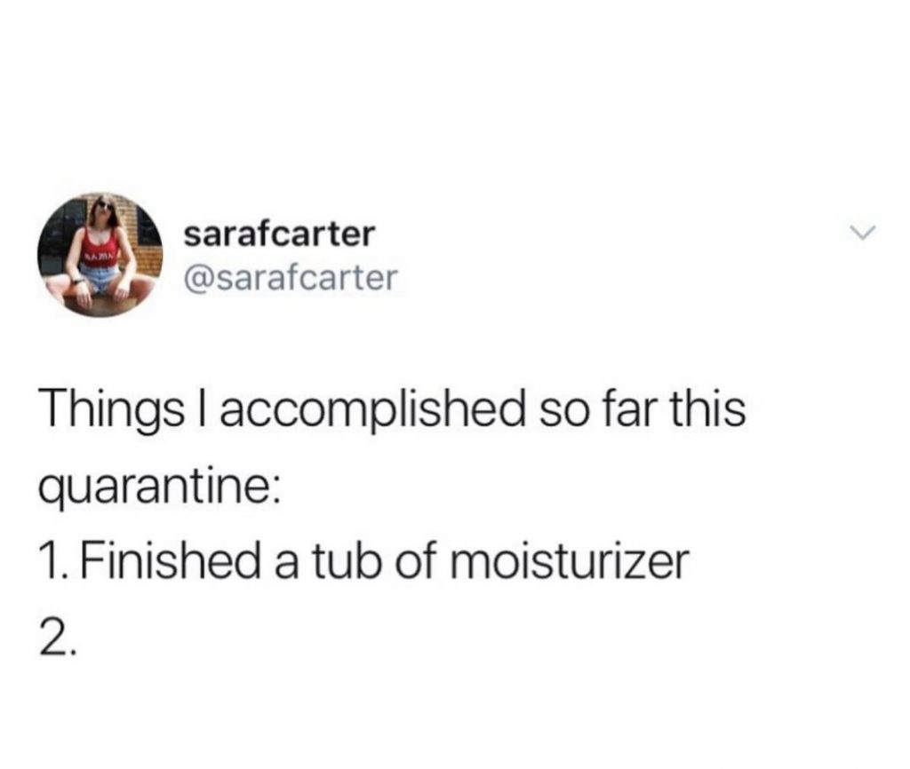 So here are a few memes we are feeling SO hard… because damn if quarantine hasn’t got us going crazy.