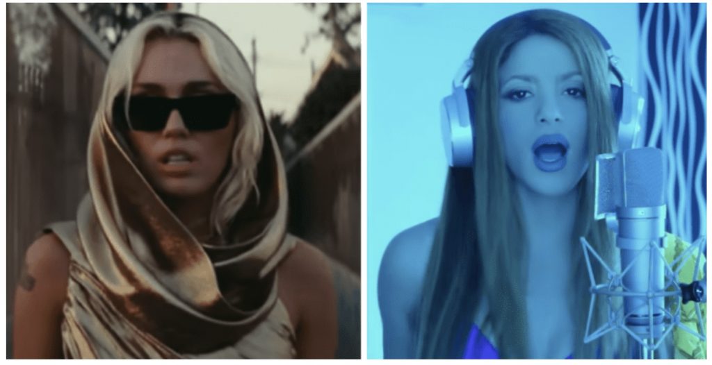 If you were on social media this weekend, you probably saw the clips from Miley Cyrus and Shakira’s post-breakup songs. Shakira’s, on one hand, we understand — she and her ex Gerard Pique recently split, after he allegedly cheated countless times and left her with massive taxes to pay.