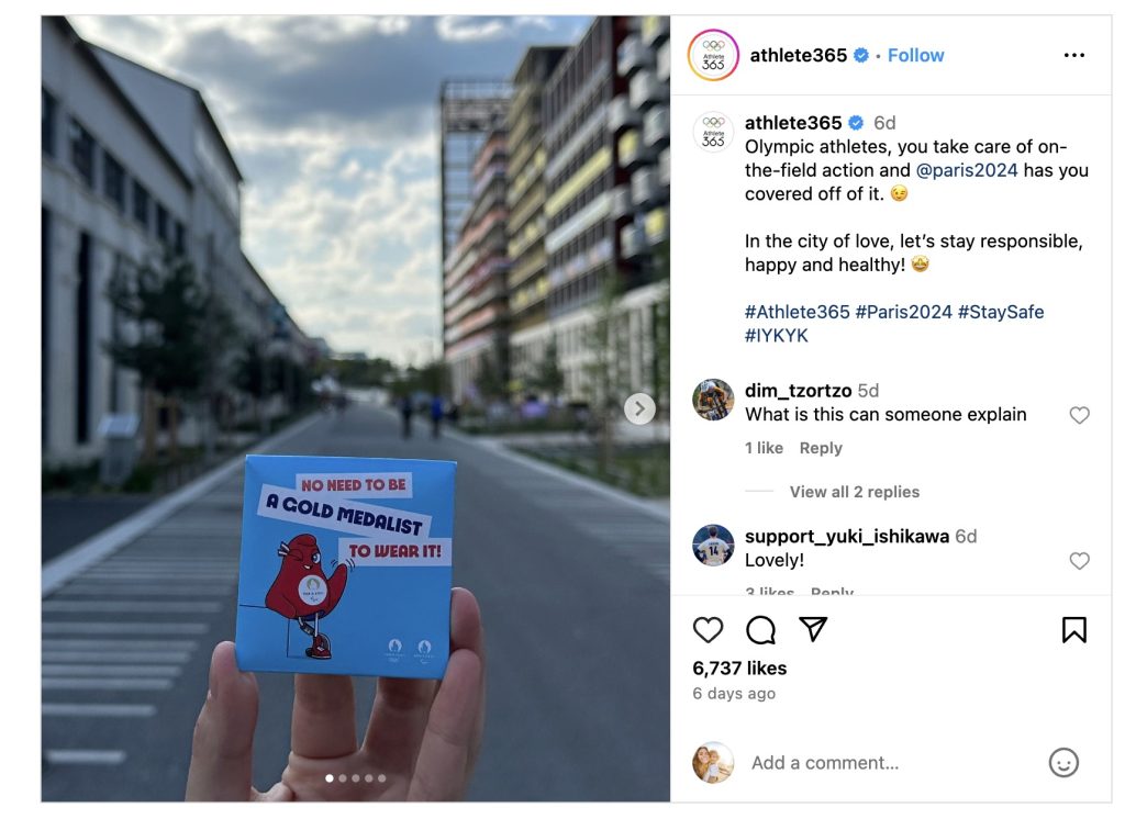 And of course, where there’s Paris 2024 products, there’s branding opportunities to be had and the condom packaging is no exception – and the athletes are loving it.