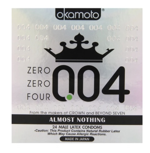 - OKAMOTO 004; “Okamoto is a Japanese condom company known for its thin-fit condoms. As one reviewer explained, “You can feel your partner’s warmth slightly better than other condoms,” “