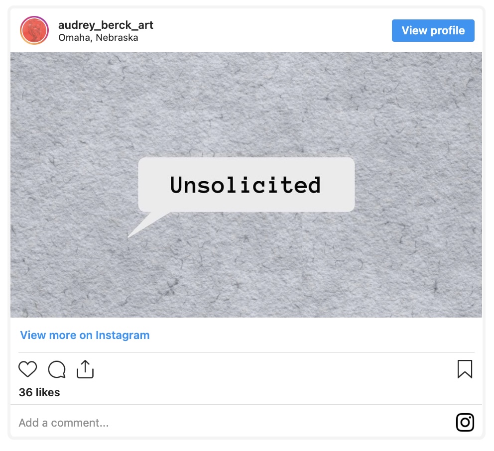 So it’s pretty funny that an artist from New York, Audrey Berke, has started turning the unsolicited dick photos she’s received from men over the years into ART. Not only is she a phenomenal artist, but she’s shedding (unflattering) light on this problem.